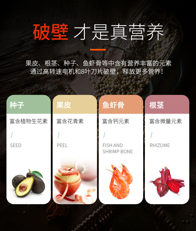 3、8叶破壁刀,全方位切割